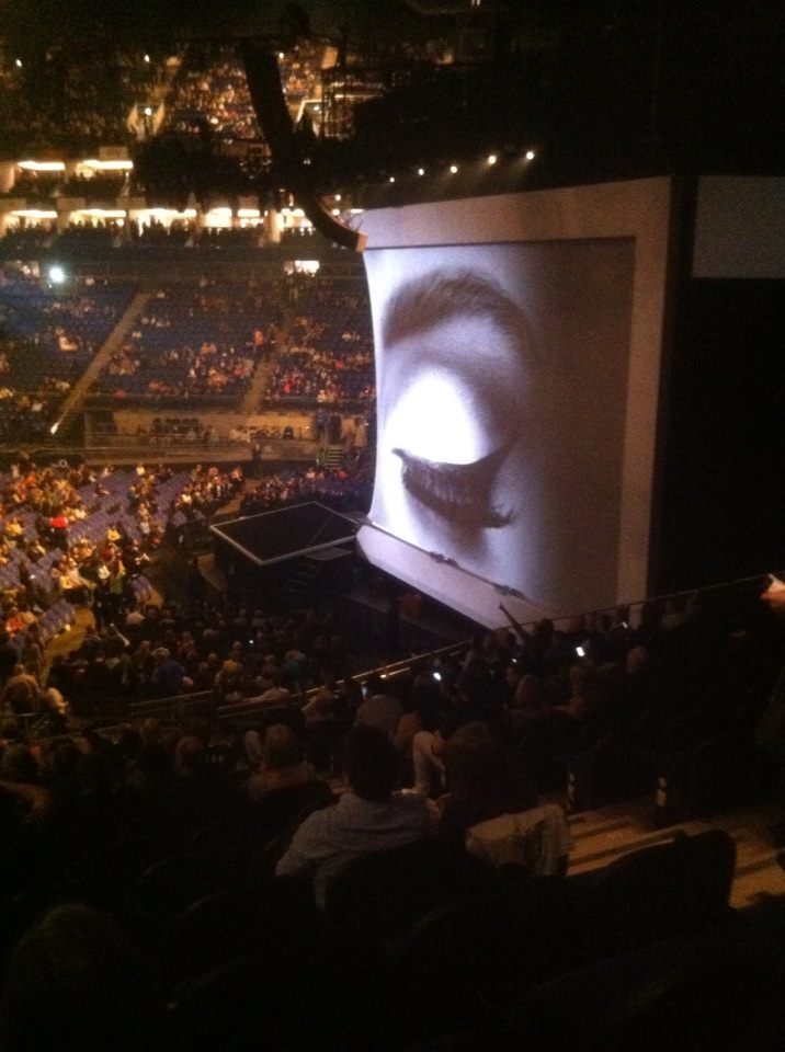 Yet she needn’t have worried. We’ve never yet seen an artist who seems so comfortable in what can feel like a gigantic, aircraft hangar of a venue. Perhaps it helped that the first we see of Adele is as she emerges on a rising stage in the middle of the arena.