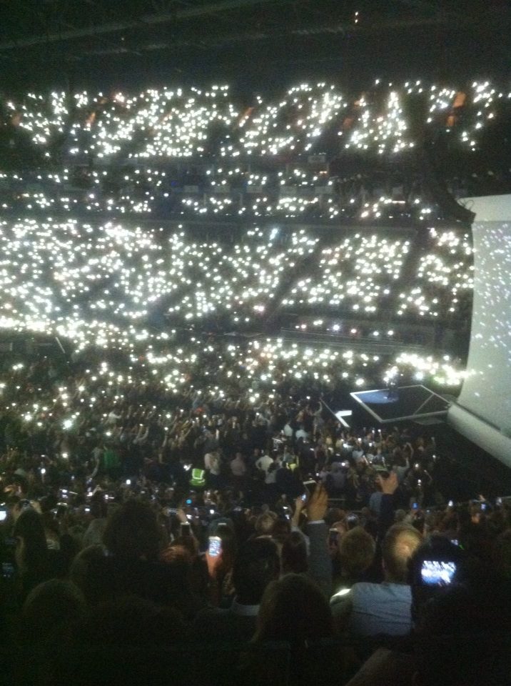 She dedicates Make You Feel My Love to Brussels and urges her fans to show their respect by turning on their cameraphone lights (above). ‘I don’t think I’ve ever actually been so moved before in my life at one of my shows, that was just so beautiful,’ she says afterwards.