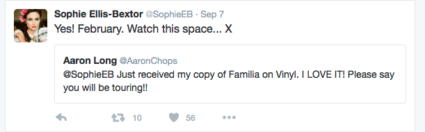 - Picture via Facebook courtesy Sophie Ellis-Bextor. Tour details here.