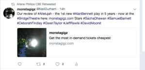 - Picture via Facebook courtesy Bridge Theatre. Tickets