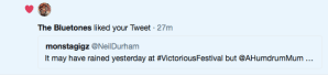 - Read more from Carron at her blog A Humdrum Mum. Carron’s take on Victorious Day 1 and Day 2. monstagigz on Victorious Day 2. Picture by Tom Langford courtesy Victorious Festival. Tickets