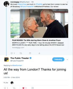 It’s little surprise that Close is 2nd favourite with the bookmakers to be awarded the Best Actress Oscar for The Wife on the evidence of her performance here.