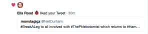 monstagigz will be at the ceremony and we feel especially pleased about this recognition because The Phlebotomist was shortlisted for our Best New Play monsta in 2018 losing out to The Inheritance.