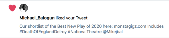 - Read on for the nominees for the monsta for Best New Play of 2020. 2019 winner: Appropriate, 2018: The Inheritance, 2017: The Ferryman