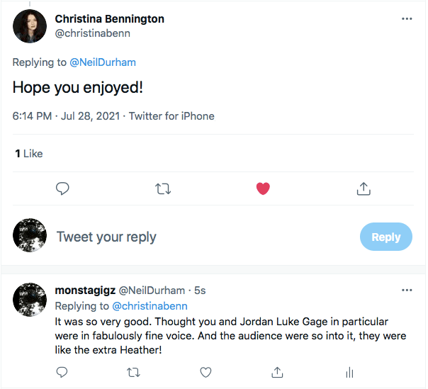 - Read on for reasons including how the vociferous audience is so powerful it is like having an extra Heather onstage