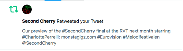 - Picture courtesy Charlotte Perrelli Tickets Watch the Second Cherry entries