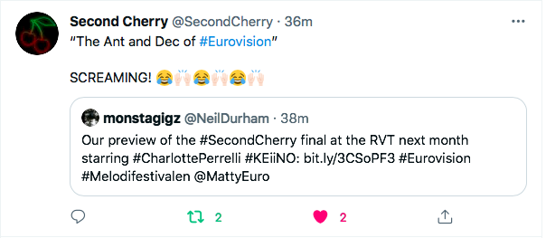 The Ant and Dec of Eurovision have picked 14 cherries which you can watch at the Second Cherry site and below is how team monstagigz will be casting its vote in the online selection and why.