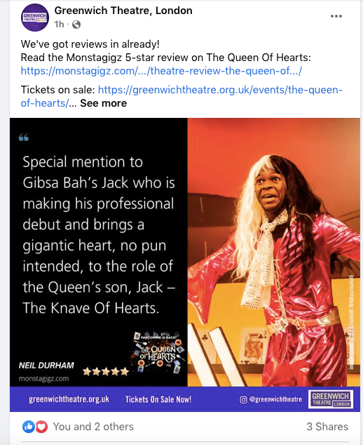 • Pictures via Facebook courtesy Greenwich Theatre Tickets