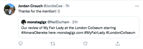 Our only problem with the musical is the difficulty it had resolving the relationship between mentor and pupil. We’re sitting in the front row and it sends a real shiver down our spine when Eliza walks off the stage, immediately towards us and up the aisle and out of the theatre at the new show close.