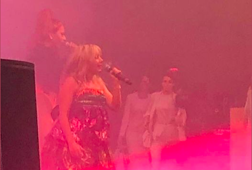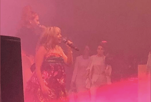 Over in the Pleasure Palace Little Boots’ 5-week-old child has ear defenders on and is backstage as she is introduced by drag queen Tia Kofi urging the audience to give the news a ‘dramatic ooh’.