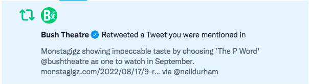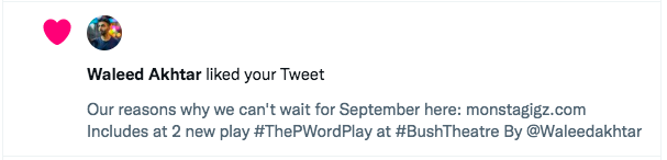 Waleed Akhtar’s new play charts the lives of 2 gay Pakistani men. Zafar flees homophobic persecution in Pakistan to seek asylum in the UK while Londoner Bilal, or Billy as he prefers to be known, is ground down by life. Runs 9 September through 22 October. Tickets Preview review