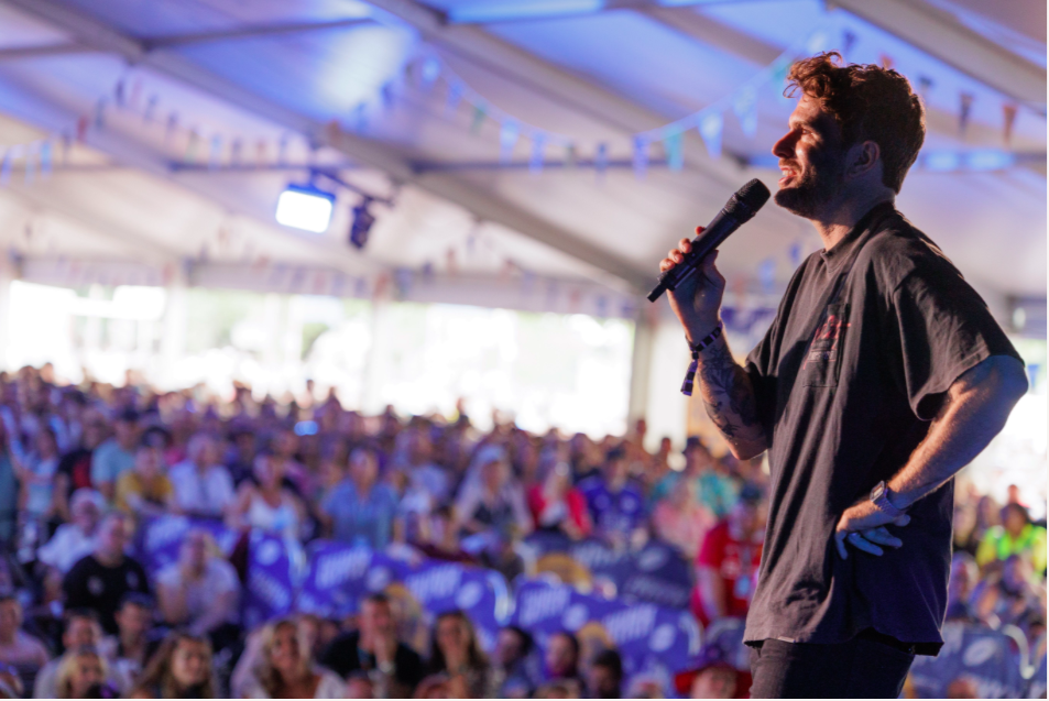 Victorious upped its comedy this year with Milton Jones and Joel Dommett (pictured above), compèred by the really funny local girl Suzi Raffell who opened with amusing memories of her favourite (not) teachers at the local catholic secondary. Milton Jones was just – well Milton Jones! Those zany one liners that you just can’t help crying with laughter at. He’s way out of the Tim Vine one liner box. You have to think with these! Recurring jokes are great too: “Some people ask me where I get my trousers from.” You just have to be there. We really loved him.