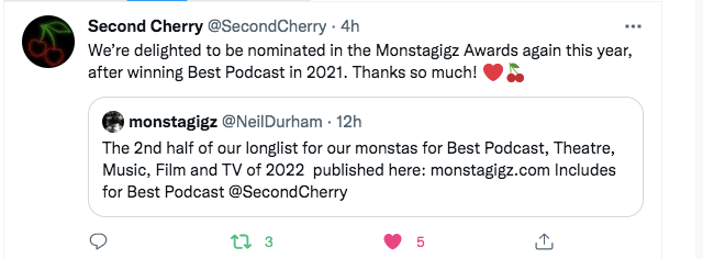 You, dear reader, are given the chance to vote in 16 categories from late November this year to tell us your favourite theatre, music, TV, film and podcast of 2022.