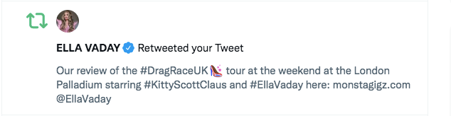 The emphasis is very much on individual performance and we think it’s a real shame that the girl group numbers that appear in the show – 2 versions of Big Drag Energy featured in this season (see The Slice Girls’ below) – have not to our knowledge featured in this touring version of Drag Race UK.