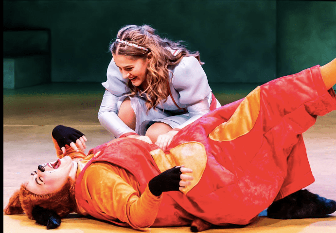 We loved the feminist storyline with Breeds’ Hood needing saving by the feisty Amy Bastani as Maid Marian (pictured on top below). We loved the sympathy for Louise Cielecki’s Mutley (pictured on the floor below) and she absolutely made the most of her role with her adaptation of Mr Cellophane from Chicago proving an unexpected early highlight.