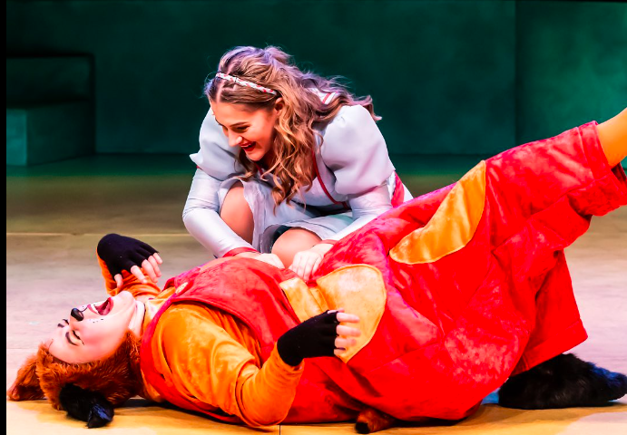 We loved the feminist storyline with Breeds’ Hood needing saving by the feisty Amy Bastani as Maid Marian (pictured on top below). We loved the sympathy for Louise Cielecki’s Mutley (pictured on the floor below) and she absolutely made the most of her role with her adaptation of Mr Cellophane from Chicago proving an unexpected early highlight.