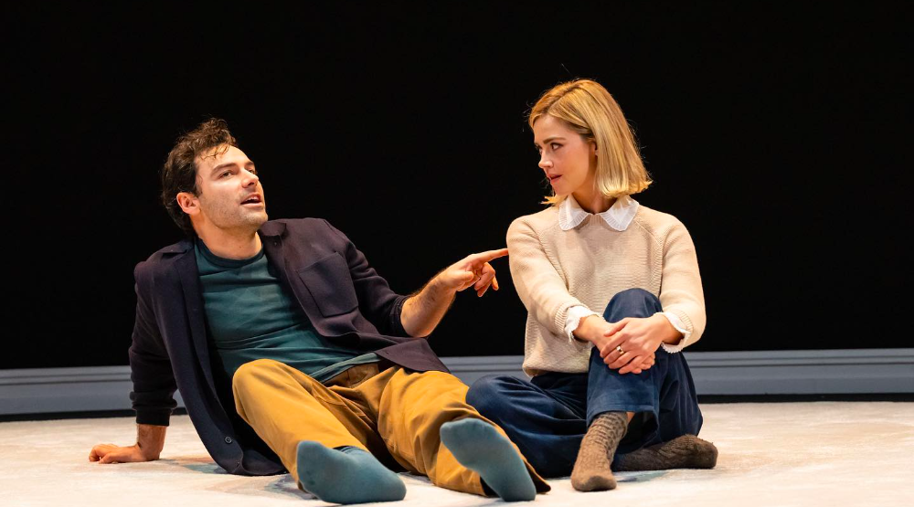 Aidan Turner’s musician Ollie (The Lieutenant of Inishmore Noel Coward Theatre) is the more relatable of the pair and gives us charm and charisma by the bucketload but also fallibility.
