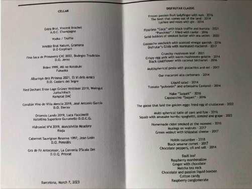 We choose the Disfrutar Classic menu with paired wines and it’s a wise choice because the alcohol complements the food brilliantly.