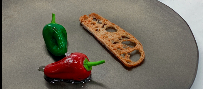 My highlights were the twist on the traditionally Spanish. Our waiting staff explained 1 of the themes of the menu was a sense of playfulness and fun combined with a sense of surprise and so when we were served with what appeared to be a green and red pepper, a nod to pimientos di padron, towards the end of the menu we weren’t quite sure what to expect.