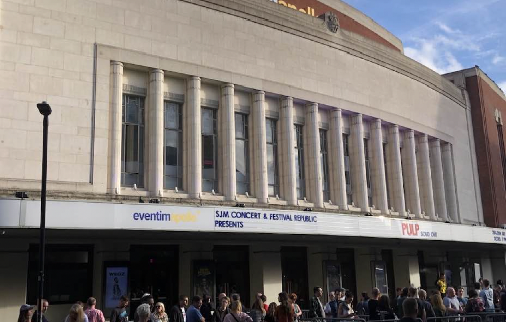 We’re here because we couldn’t get a ticket for Pulp’s sold-out Finsbury Park show in July and we’re greeted at our arrival at this iconic venue with a sign which reads simply: ‘Pulp Sold Out’ as they have done here for 2 nights.