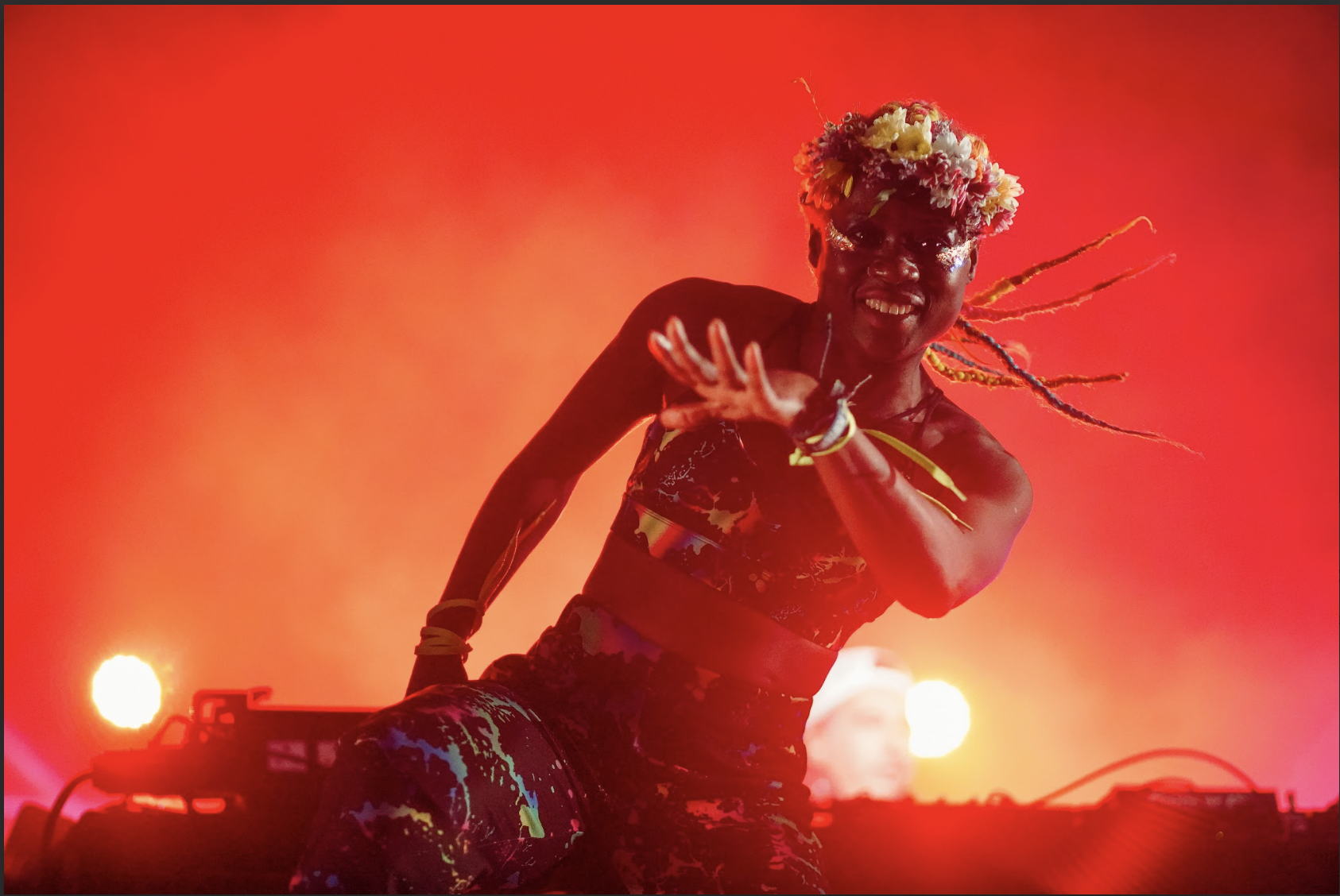 Ready for a rest, we chill out to Muttnik, a “cosmic funk trio”. Well, we want to dance, but we can’t: we have walked 33 miles in three days! And racked up 21 miles of cycling, which is the best way for locals to get down there. Our toes move though. This is the beauty of the World Music Village: two stages featuring those avant garde randoms that you might normally not come across. We wish we’d seen the whole set.