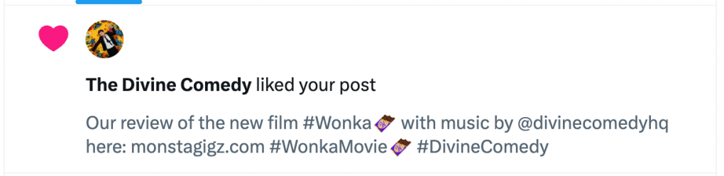 The Divine Comedy won our Gig Of The Year monstas last year and in 2019. You can vote for Wonka to win film of the year in 2023.