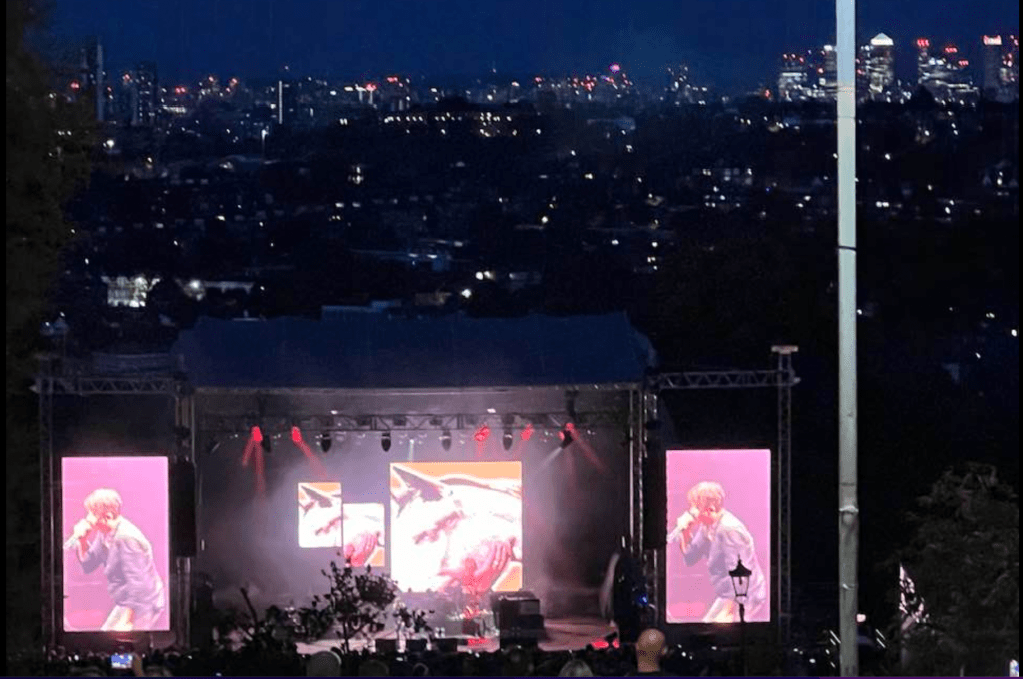 This venue is on a hill looking out across the capital city and is 1 of London’s most iconic views. Of course the bands can’t see it but as a member of the audience it means the views are great from almost every vantage point and, in weather news, it’s 1 of the hottest days in what hasn’t been a great summer so far for outdoor gigs.