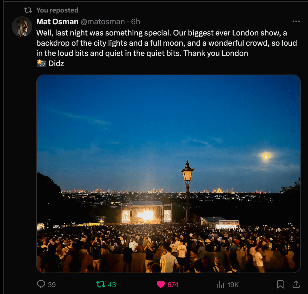 Near headline sets then from 2 of our favourite bands outdoors in 1 of London’s most idyllic locations on a gorgeous day.