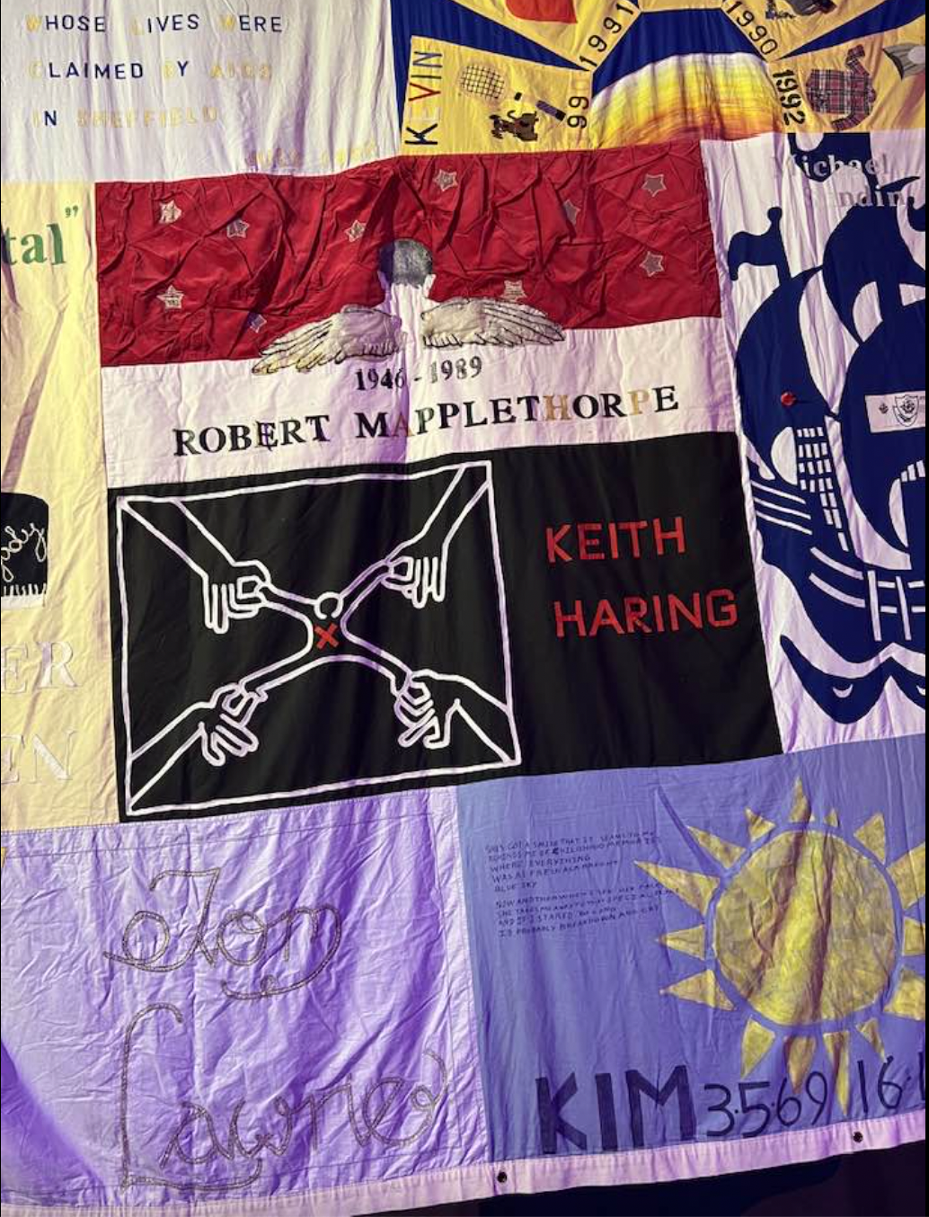 Lovingly handmade by family, friends and lovers, the UK AIDS Memorial Quilt holds the memory of approximately 384 people within its 42 blocks, each of which is 12ft by 12ft. The UK AIDS Memorial Quilt is archived at HIV charity Positive East.