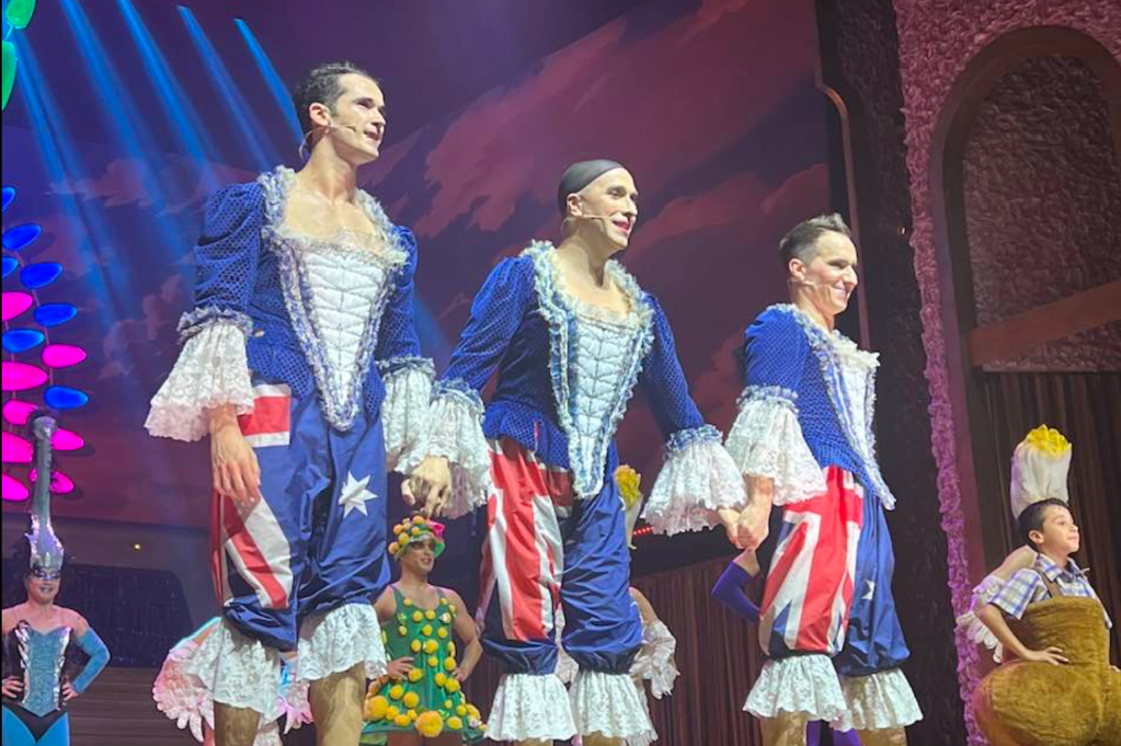 The songs are camp and well-chosen – Go West by Pet Shop Boys starts the journey – and jeopardy comes first in a Broken Hill bar and later as our drag queens find Priscilla has been daubed with homophobic graffiti.