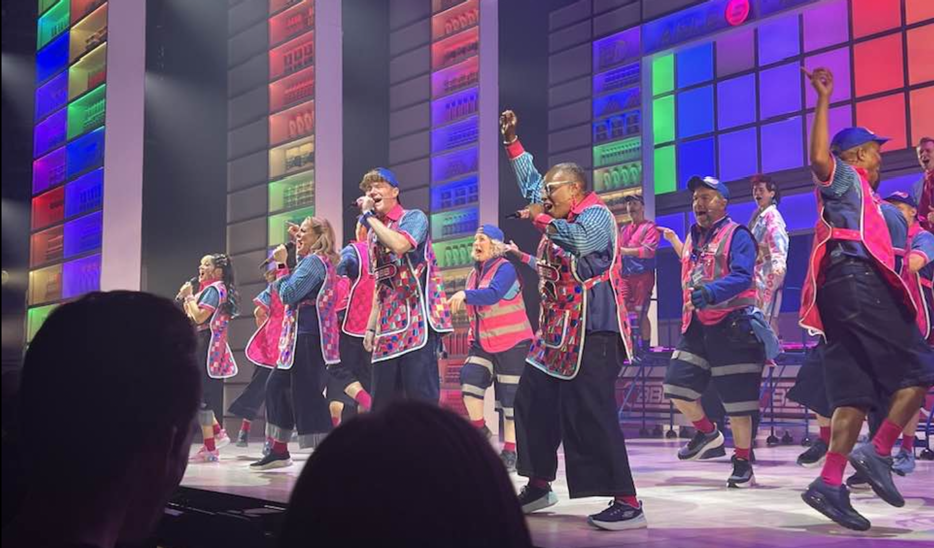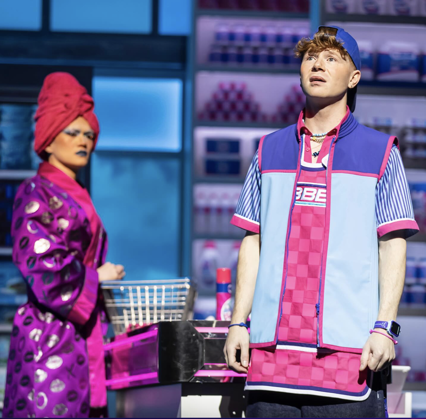 Fellow Better Best Bargains supermarket worker Vel played by Basement Jaxx’s Sharlene Hector (A Strange Loop, Barbican) bosses Neon Blue and Hiba Elchikhe (Brooklyn – The Musical, Greenwich Theatre) brings the joy to Something In Your Eyes and big notes to Scared Of The Dark.