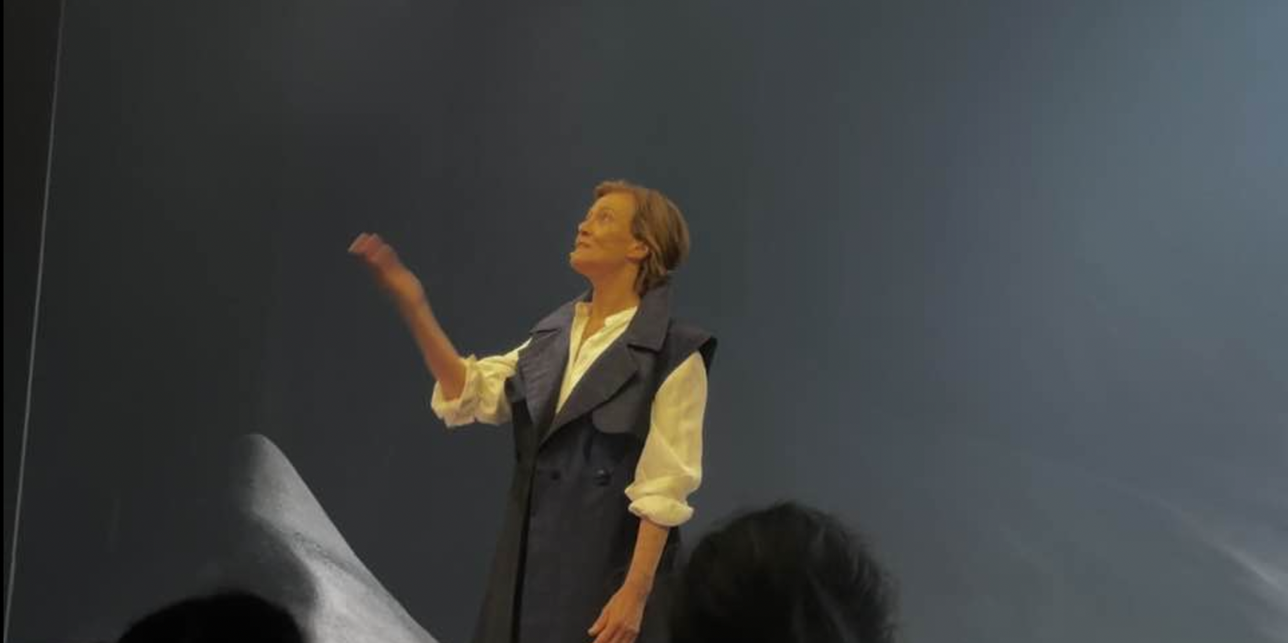 Gone are the cameras and screens which characterised director Jamie Lloyd’s most recent work (Romeo and Juliet, Duke Of York’s Theatre) and instead we have an enchanting opening against a giant billowing blue sheet signifying waves and sails as Sigourney Weaver’s Prospero sits on a stool contemplating her exile with her daughter to the island where Shakespeare’s tale is set.