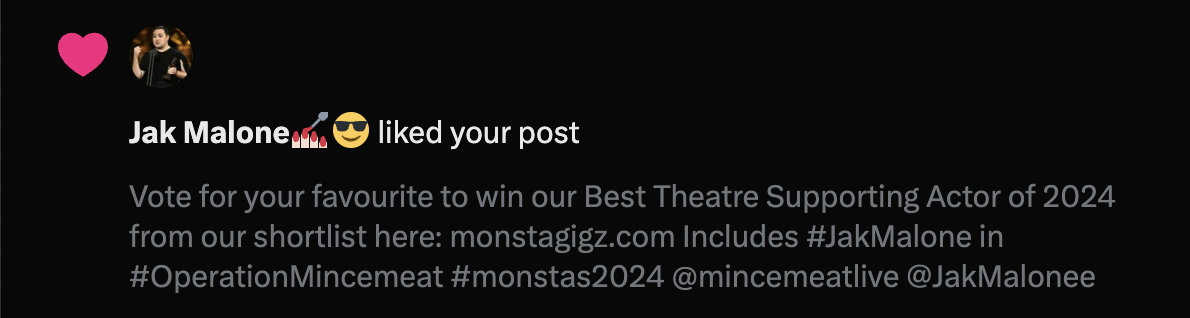 - Read on for the nominees for the monsta for the Best Theatre Supporting Actor of 2024 Previous winner 2023: Katy Secombe (Guys And Dolls, Bridge Thetare)