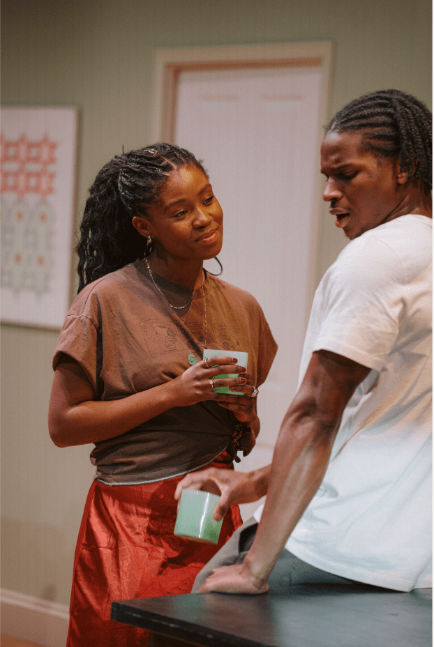 When Honey, given life by Sex Education‘s Kedar Williams-Stirling (Red Pitch, Bush Theatre), starts to fall for his new squeeze Maya, played by a magnetic Adeyinka Akinrinade, and she wants to set up Cashel with her student psychology friend Eloise what could possibly go wrong?