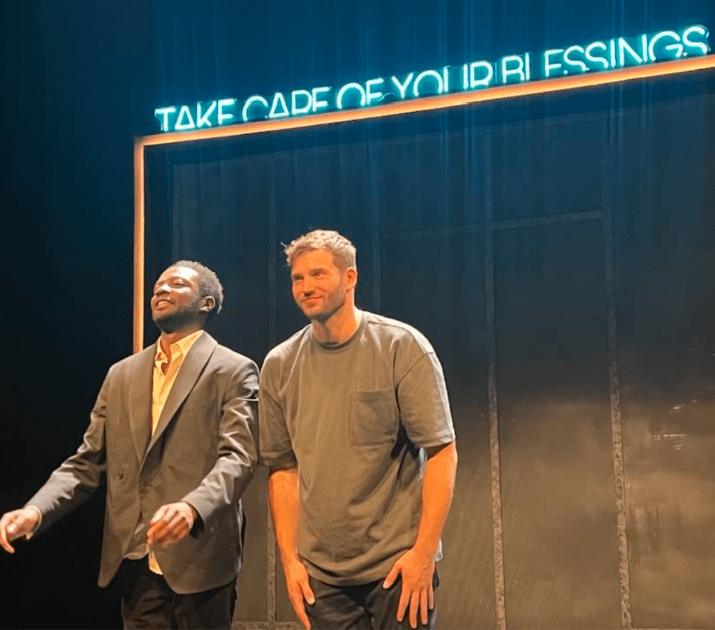 It’s occasionally funny not least because it is white middle class Neil, a doe-eyed and swarthy Alexander Lincoln, who is trying to encourage lower class writer Jesse, the chameleon-like Omari Douglas (Lavender, Hyacinth, Violet, Yew, Bush Theatre and TV’s It’s A Sin) to find his protest voice.