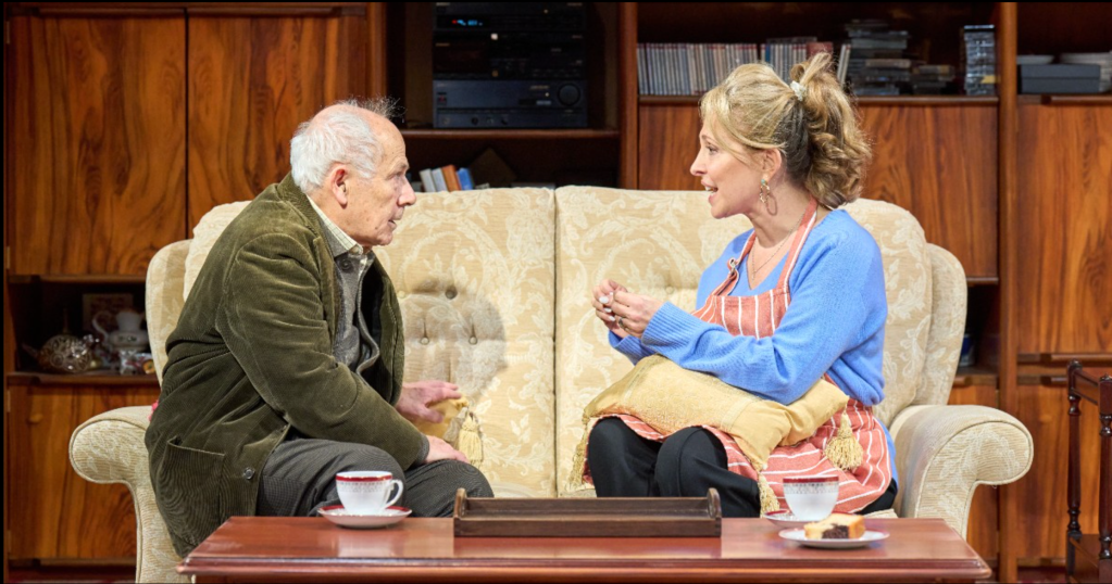 The Rosenbergs are Nicholas Woodeson’s David (pictured below left) and Tracy-Ann Oberman’s (The Merchant Of Venice 1936, Trafalgar Theatre) Lesley who are kosher caterers with a business on the brink of collapse after a customer death which could be saved if a dinner with a friend and potential lucrative client goes well.