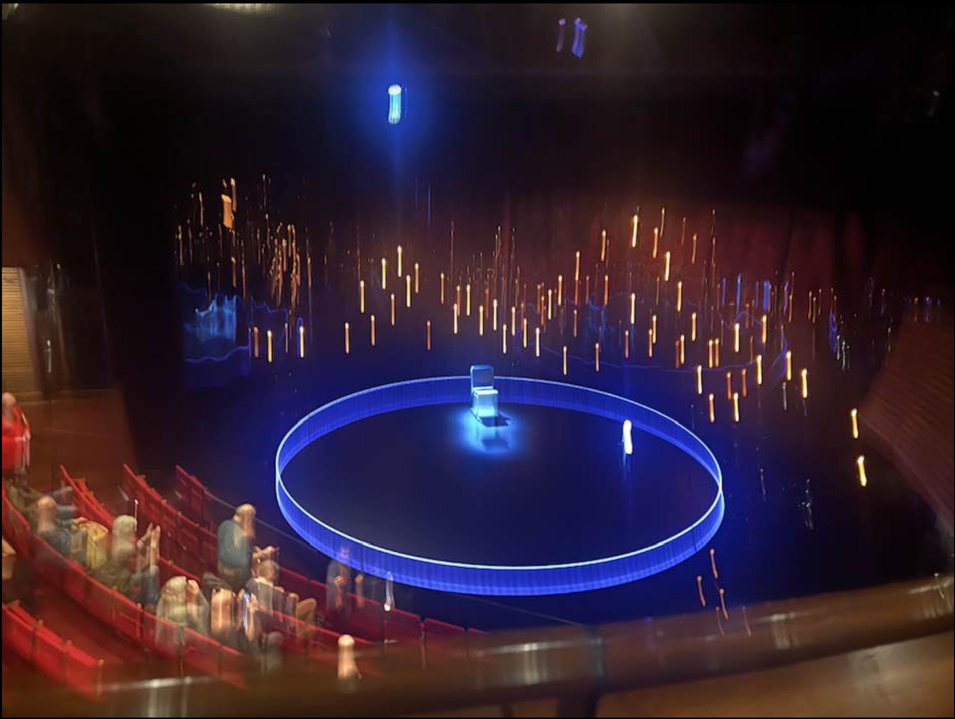 Director Michael Longhurst (Second Best, Riverside Studios, Hammersmith) gives us a stage with a revolve, scattered with occasional wooden chairs, to perhaps illustrate the cyclical nature of the very wordy exposition here.