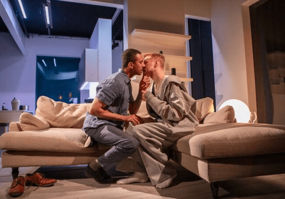 We 1st saw John McCrea originating the titular role in musical Everybody’s Talking About Jamie in Sheffield in 2017 and here he plays Jude with the action opening at 3am in his swanky if malfunctioning flat as he tends to his wounds in the bathroom and his ex Kyle, a mysterious Perry Williams, is busting to use the toilet.