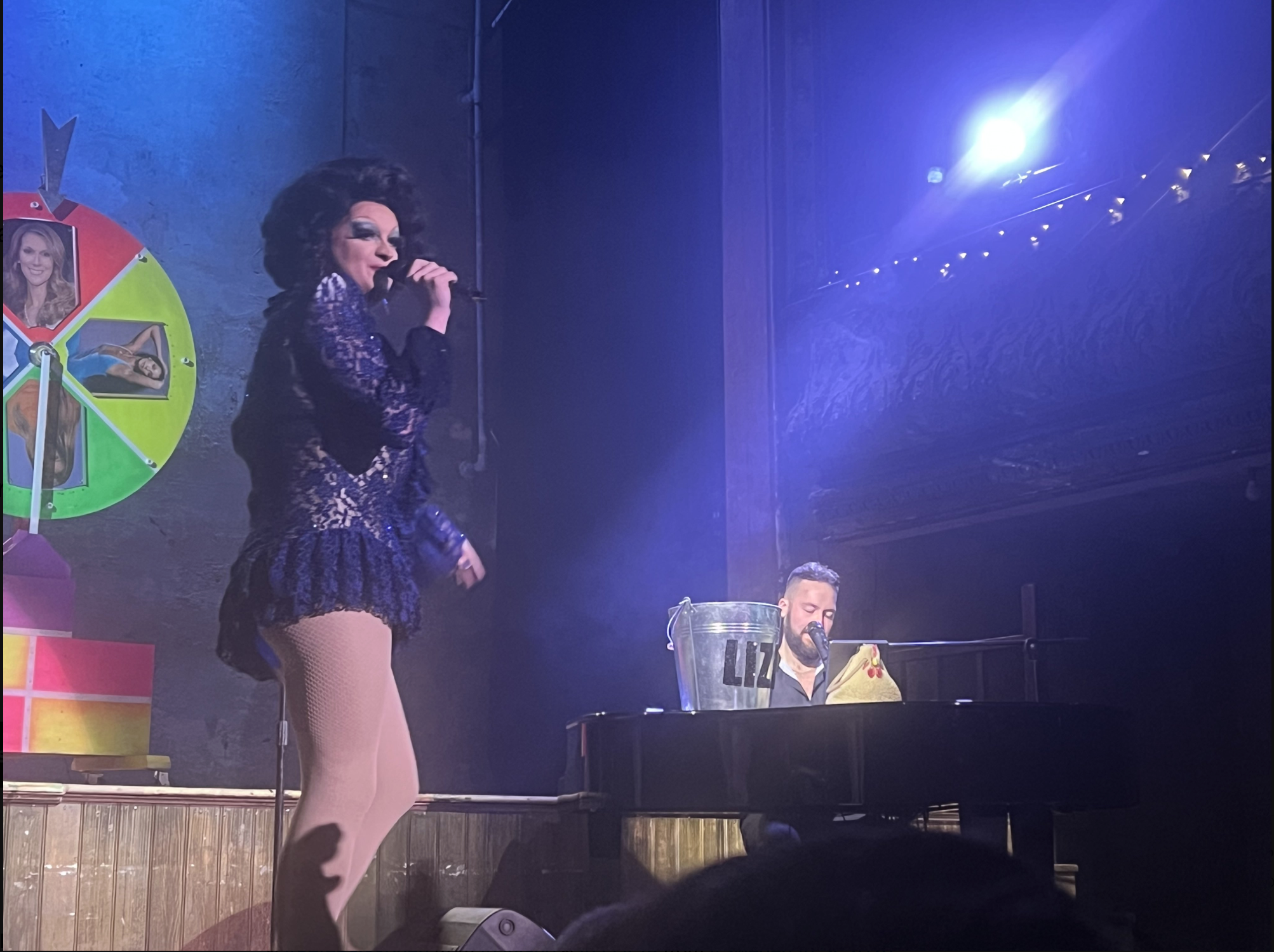 On entry to this gorgeously old and idiosyncratically appropriate venue we’re presented with a paddle which is pink on 1 side and green on the other allowing us – the audience – to Choose Your Own Cabaret, the title of tonight’s show.